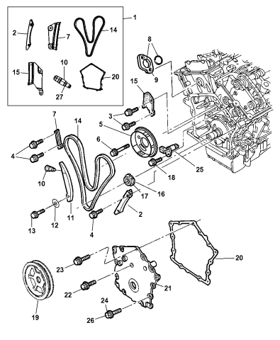 Timing Belt Chain Cover And Components 2007 Chrysler Sebring