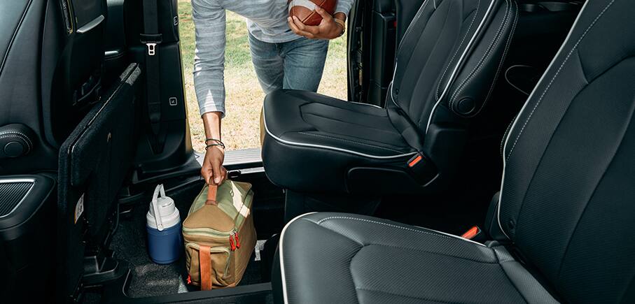 Stow n Vac The Stow n Vac Integrated vacuum powered by RIDGID is an incredible new addition to the Chrysler Pacifica. In the case of the Pacifica hybrid while the third-row seats in that version fold into the floor the second-row ones dont due to the battery lodged in the floor. Standard Nappa leather seating adds a touch of luxury to the interior.